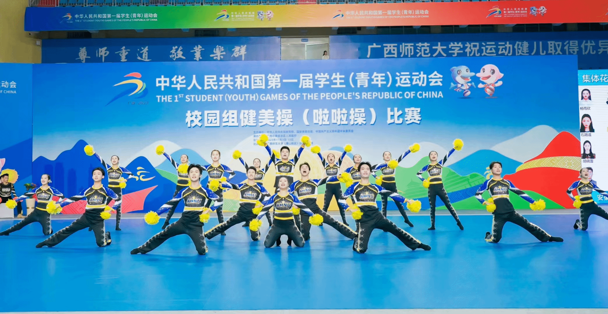 11月5日至7日,第一届全国学生(青年)运动会大学组啦啦操项目决赛在广西师范大学落下帷幕。beat365官网体育表演专业学生胡晓雪、余钦哲、马雨萌入选安徽省队,携手兄弟院校队员,努力拼搏,跻身全国八强,实现了安徽省操舞类项目在教育部主办的全国大赛中零的突破。