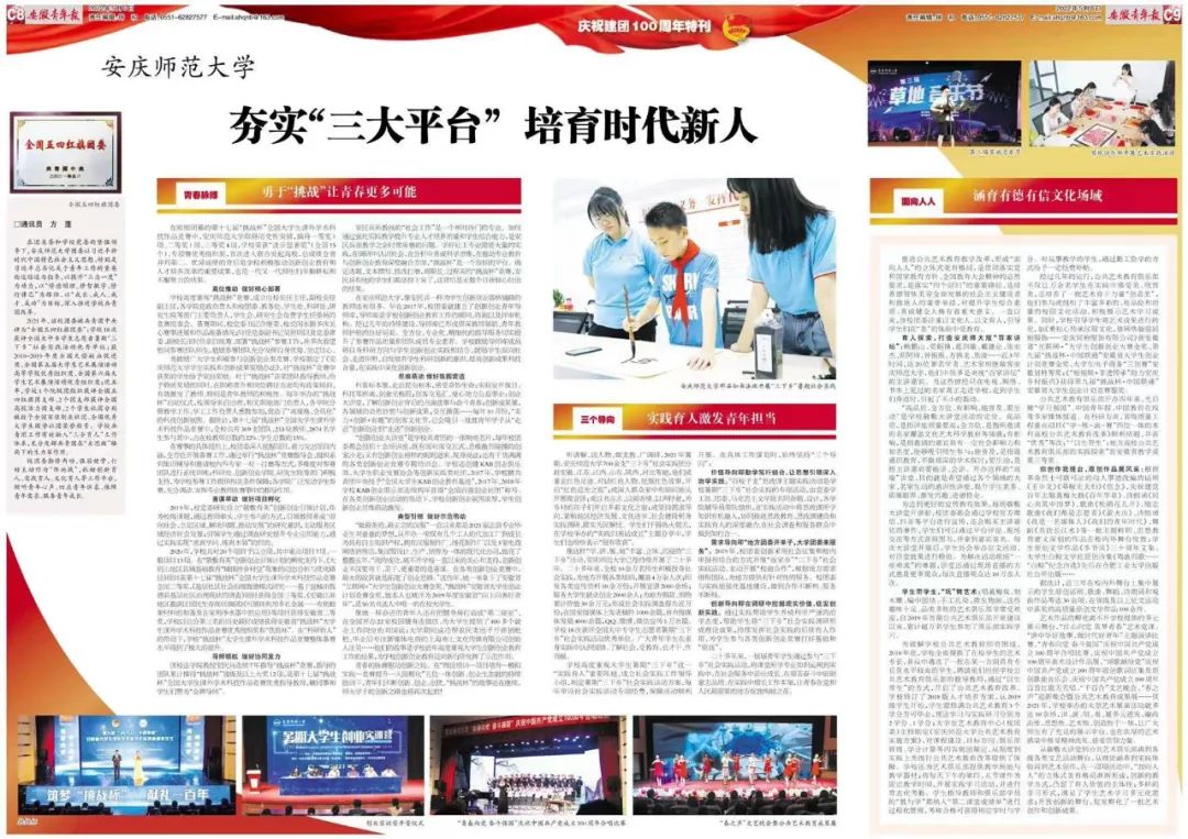2022年5月,《安徽青年报庆祝建团100周年特刊》专版深度报道beat365官网共青团工作