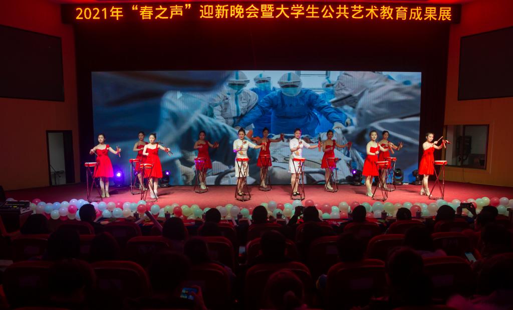2021年12月,学校举行学生表彰大会暨“春之声”大学生公共艺术教育成果展