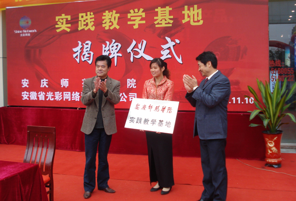 仪式上,副院长张群与安庆市政协副主席张桂生为安庆师范学院实践教学基地揭牌。