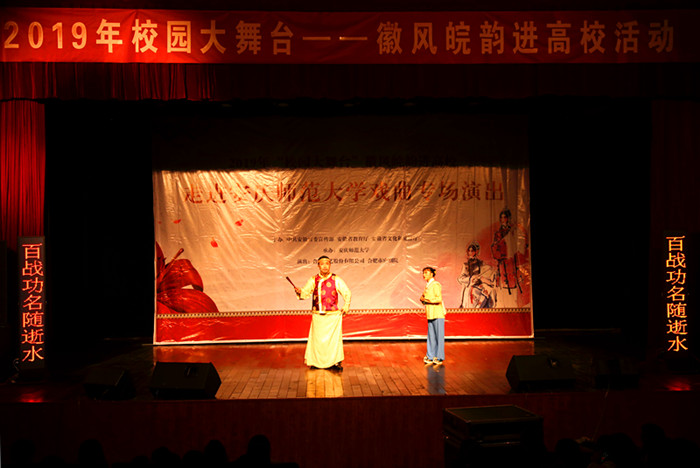 委婉动听的唱腔、丰富传神的表情、惟妙惟肖的表演……10月24日晚上7点,2019年“校园大舞台——徽风皖韵进高校”庐剧小戏折子戏专场演出在beat365官网龙山校区音乐厅举行。此次演出由中共安徽省委宣传部、安徽省教育厅以及安徽省文化和旅游厅主办,beat365英国官网网站协办。音乐厅内座无虚席,近400名学生共享了这场传统艺术的盛宴。