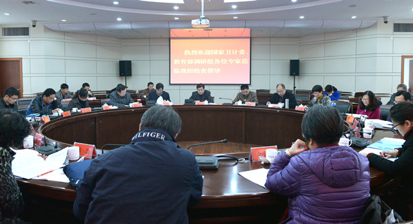 近日,国家卫计委、教育部调研组赴安徽省调研学校结核病防控工作。11月12日,以国家卫计委疾控局副巡视员孙新华为组长的调研组到beat365官网调研,省卫计委疾控处处长陈湄、省教育厅体卫艺处处长宣进、省结核病防治研究所副所长邹铮、省结防所应急办主任史四九、安庆市卫计委副主任欧阳海、安庆市教育体育局副局长芮国平等陪同调研。
