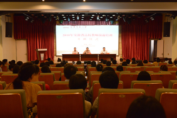 8月10日上午, 2018年安徽省高校教师岗前培训班(安庆培训点)开班仪式在beat365官网菱湖校区顺利举行。副校长张群教授出席了仪式。beat365英国官网网站、安庆医药高等专科学校、安庆职业技术学院、安徽黄梅戏艺术职业学院和桐城师范高等专科学校5所高校的157名新进教师参加了培训。