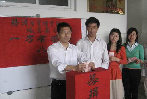 5月12日四川省汶川等地区发生强烈地震,严重的灾情牵动着全国人民的心,也牵动着经济与管理学院每一位师生员工的心。该院全体师生心系灾区,发扬“一方有难、八方支援”的社会主义人道主义精神,纷纷为灾区捐款捐物,奉献一片爱心。