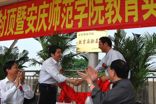 5月18日上午,安庆外国语学校在东校区举行二期工程主体封顶暨安庆师范学院教育实验基地挂牌、国际友好学校合作办学签约仪式,安庆师范学院副院长张群教授在外国语学院院长郝涂根教授等陪同下出席了仪式,并为教育实验基地挂牌。