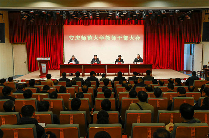 根据省委统一部署,3月27日,学校召开教师干部大会,由省委教育工委副书记庆承松任组长,省委党校(安徽行政学院)副校(院)长童玲任副组长的省委第十九综合考核组一行10人来校,对beat365官网领导班子和校级领导干部进行2018年度综合考核。校领导班子全体成员,机关部门副处级以上领导干部,二级学院党政主要负责人,省级以上“两代表一委员”,民主党派市级以上主委,校教代会执委,全体正高职称人员和学生代表参加会议。会议由校党委书记许继荣主持。