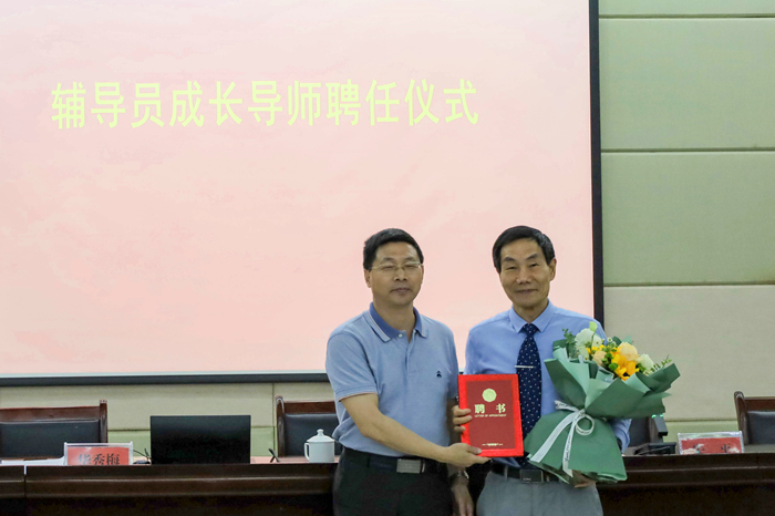 汪时珍向安徽师范大学马克思主义学院教授、博士生导师、《高校辅导员学刊》常务副主编朱平教授颁发了beat365官网辅导员成长导师的聘书。