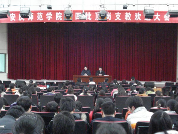 为做好本批次顶岗支教工作,教务处提前谋划,详细部署,下发了《关于做好近期顶岗支教工作的通知》,要求各院系对顶岗支教学生进行岗前培训;2月27日,学校还在龙山校区图书馆报告厅召开第四批顶岗支教欢送大会。会上,教务处处长程曦从生活中的小事例出发阐释了顶岗支教的大意义,详细说明了“安全、有序、富有成效”的八字要求,希望支教同学用心体验生活,感悟教育真谛。教务处及实践教学中心负责同志也结合前几批顶岗支教工作中出现的一些细节问题跟同学们进行探讨。(章林)