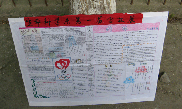 5月21日,生命科学系生卫部成功举办了首届“舍报评比”活动,其中,《雨林报》、《象牙塔报》、《B博舍报》分别获一、二、三等奖,获奖作品已在校园内展览。