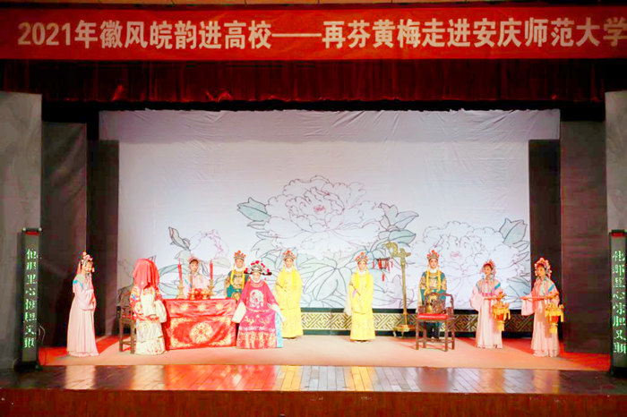 “为救李郎离家园,谁料皇榜中状元……”10月25日,中共安徽省委宣传部、省教育厅、省文化和旅游厅联合主办的2021“校园大舞台——徽风皖韵进高校”活动走进beat365英国官网网站。国家一级演员余淑华、马自俊、马丁和国家二级演员江李汇等领衔的再芬黄梅艺术剧院的艺术家们带来经典黄梅戏剧目《女驸马》。党委副书记吴照明,党委宣传部、学工部、团委和黄梅剧艺术学院负责人,各学院分管学生工作副书记和400余名师生共同观看了演出。