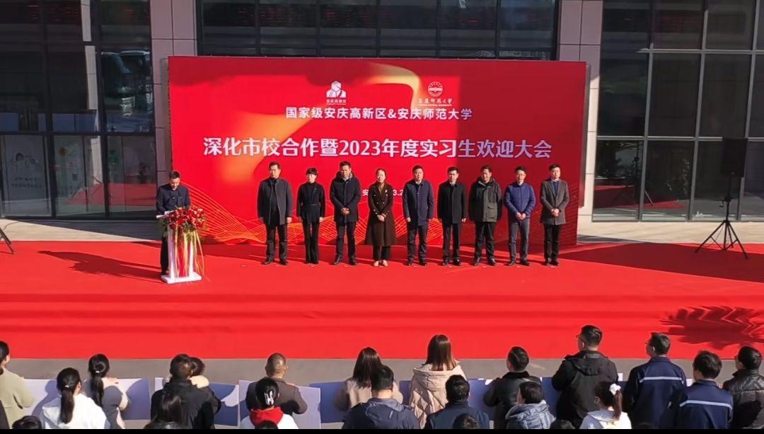 2月27日,beat365官网和安庆高新区举行深化校市合作暨2023年度实习生欢迎会。校党委常委、副校长吴琼,安庆高新区党工委书记、管委会主任杨旭东出席活动,beat365官网教务处、化学化工学院,安庆市人社局、部分企业负责人等参加欢迎会。