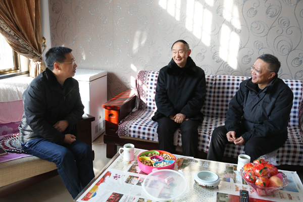 每到一户,校领导与他们促膝交谈、嘘寒问暖、祝贺新春,感谢他们长期以来为学校发展所付出的辛勤劳动和无私奉献,并详细了解他们的生活、身体状况,通报学校一年来的工作,衷心祝愿他们身体健康、生活愉快。大家对学校2017年取得的显著成绩感到欣慰,对学校给予的关心表示衷心感谢,并就学校推进综合改革和高水平大学建设提出许多宝贵建议,共同祝愿2018年学校各项事业取得更加辉煌的成绩。