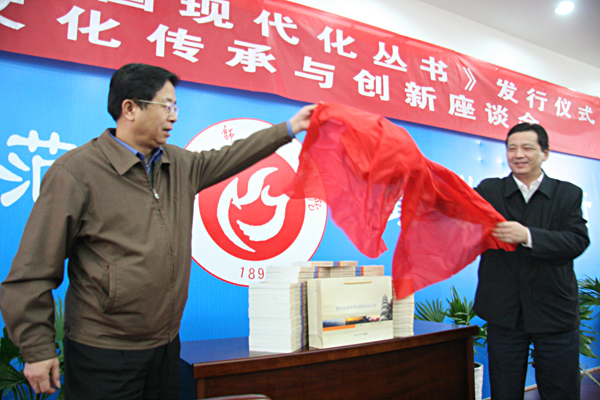 校党委书记何小祥同志与安庆市委副书记陶方启同志共同为新书揭彩。