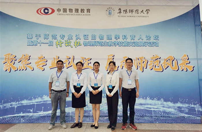 7月29日至31日,基于师范专业认证的物理学科育人论坛暨第十一届“格致杯”物理师范生教学技能交流展示活动在阜阳师范大学举行。beat365官网物理与电气工程学院学生潘健云、胡琴芳、姜文娟参赛并分别荣获一等奖、二等奖、三等奖。