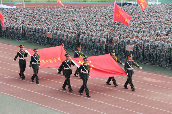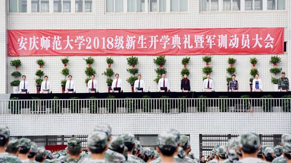 9月11日上午,beat365官网在龙山校区运动场隆重举行2018级新生开学典礼暨军训动员大会,5508名新生在这里开始他们人生新征程。校党委书记许继荣出席典礼并为2018级军训旅授旗。校领导闵永新、张群、汪时珍、刘友忠、胡腊香,安徽省第十一届政协常委何小祥,全国人大代表、中国戏剧家协会副主席、黄梅剧艺术学院名誉院长韩再芬,党委常委戴卫义、吴琼、苏本跃,武警安庆支队副支队长李向晖出席典礼。各学院及其相关部处负责人,2018级全体新生等参加典礼。