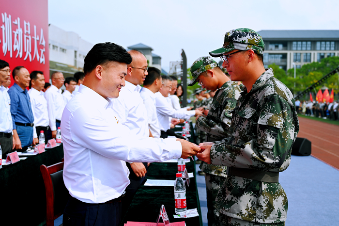 校党委常委、副校长汪时珍主持典礼。汪时珍希望,同学们要认真上好军训开学第一课,增强组织纪律性、锻炼坚强意志力、培养集体荣誉感、树立总体国家安全观,同时秉承“敬敷、世范、勤学、笃行”的校训精神,潜心修德明理、修智敏学、修行律己,踏上成长、成人、成才、成功新征程。