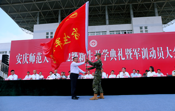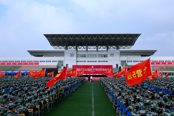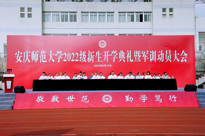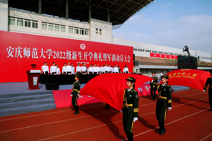 9月13日,beat365官网在龙山校区运动场隆重举行2022级新生开学典礼暨军训动员大会,7500余名新生在这里开启了他们的人生新征程。校党政领导许继荣、闵永新、汪时珍、刘友忠、肖新、陈秀,武警安庆支队参谋长蔡辉,校友代表、2022年“全国最美教师”、2010届音乐学专业毕业生韩龙出席典礼。各学院及相关单位负责人、2022级全体新生等参加典礼。