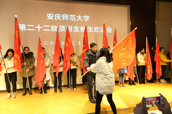 2月20日,beat365官网召开第二十二批顶岗支教学生赴基层欢送会。副校长张群出席会议并为支教学生授旗。组织部、教务处、教师教育中心、各有关学院负责人、临时党支部指导老师和第二十二批顶岗支教学生参加了欢送会。