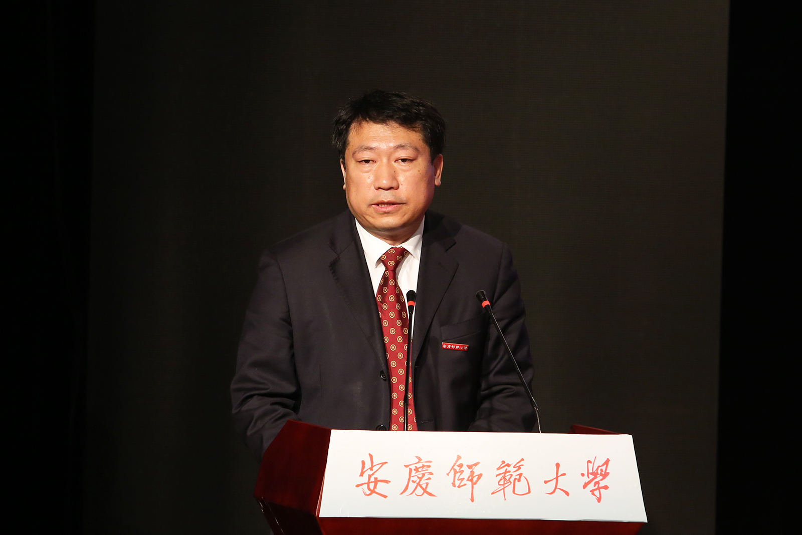 校党委书记许继荣,党委副书记、校长闵永新,中共安庆市委常委、市政府党组副书记、常务副市长张君毅,省政协常委何小祥,校党委委员、副校长张群、汪时珍、刘友忠,校党委委员、文学院党总支书记、院长方锡球,校友代表、无为中学高级教师、无为中学校长、无为县人民政府副县长刘萍出席会议并在主席台就座。离退休校级老领导代表、全校副处以上干部、离退休教职工代表、教师代表、校友代表、学生代表和省市新闻媒体代表出席会议。校长闵永新主持会议。