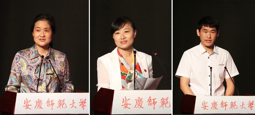 教师代表、硕士研究生导师、2016年度安徽省师德标兵、教育学院宋志英教授在会上发言。她表示,作为一名来校10余年和学校一起成长的教师,有幸见证学校的发展和变化,有幸分享学校一次次成功的喜悦,有幸聆听和感受一代代师大人对教育事业的无私热爱和忠诚,为学校的快速发展感到无比的骄傲和自豪。她代表全体教师表示,将以更加饱满的精神状态和满腔的工作热情,努力教书育人,把辛勤和智慧献给学校、把爱心和责任献给学生,用激情续写安庆师大教育新篇章,用汗水铸就安庆师大教育新辉煌!