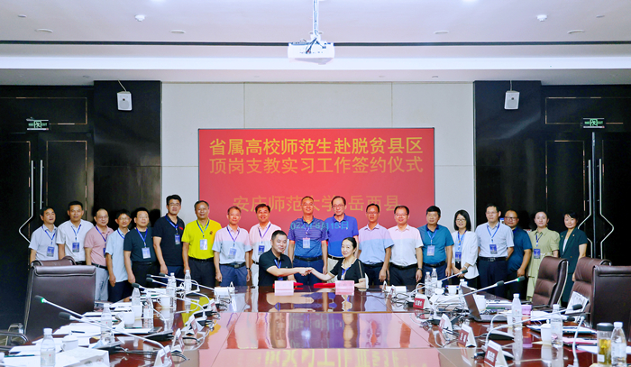 8月15日,安徽省属高校师范生赴脱贫县区顶岗支教实习工作座谈会在安庆市举行。此次会议由省教育厅主办,beat365英国官网网站承办。校党委常委、副校长吴琼,省教育厅师资处副处长韩光、高教处副处长朱永国,《中国教育报》安徽站副站长俞路石和岳西县副县长陈浩浩出席座谈会。8所省属高校教务处负责同志、9个脱贫县区教育局负责同志及beat365英国官网网站教务处、大别山发展研究院、研究生院、教师教育学院负责同志等50余人参加座谈会。座谈会由韩光主持。