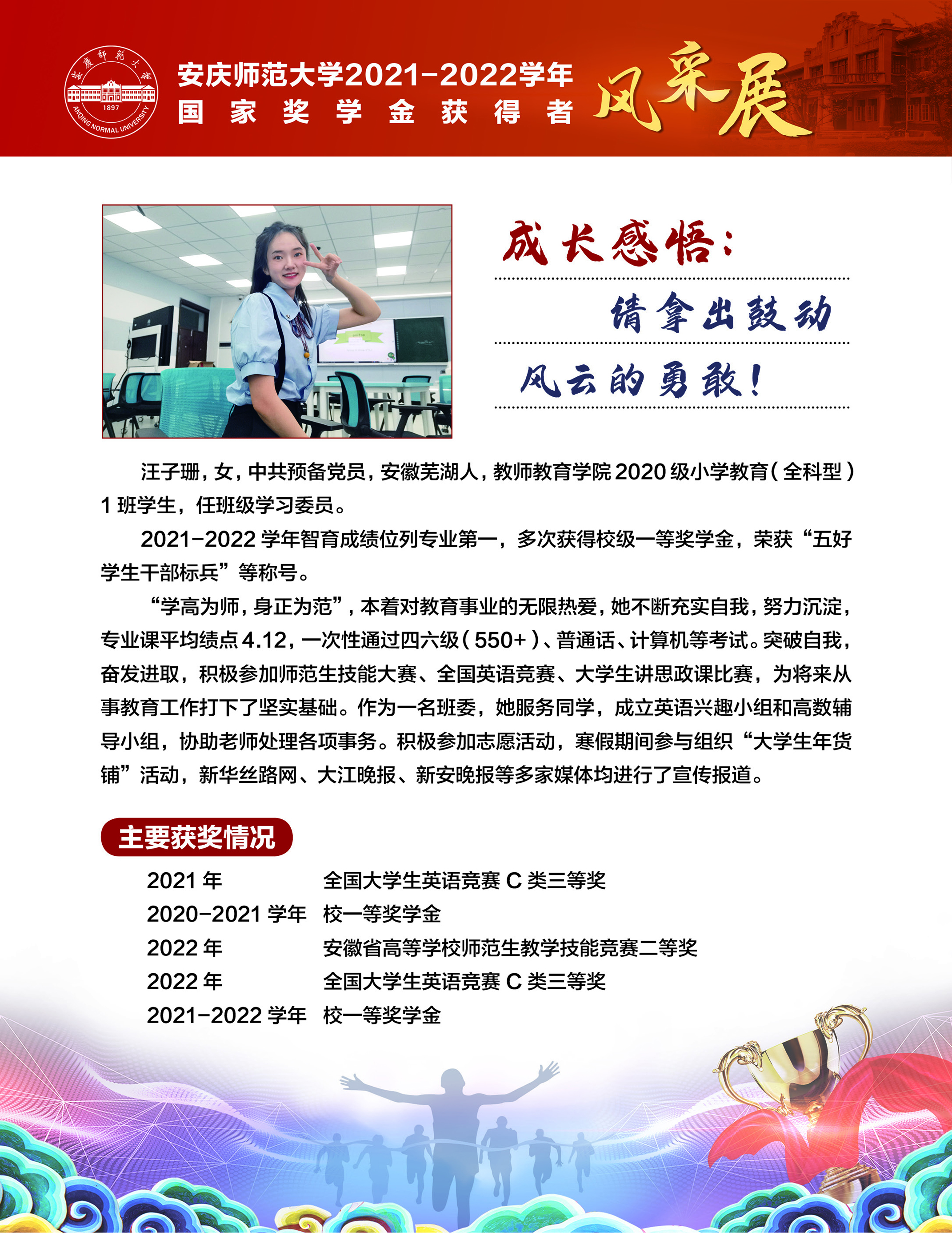 【砥砺奋进的五年∙学生风采】本科生国家奖学金获得者风采展示(二)