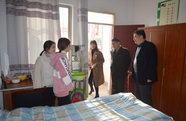 张群一行到怀宁县特教中心,看望正在这里顶岗支教的beat365官网15级特殊教育专业司家娟、罗京、叶青和尹刘丽等4位同学,详细询问了同学们在顶岗支教期间的生活、教学和支教收获等情况,并与同学们进行了座谈。