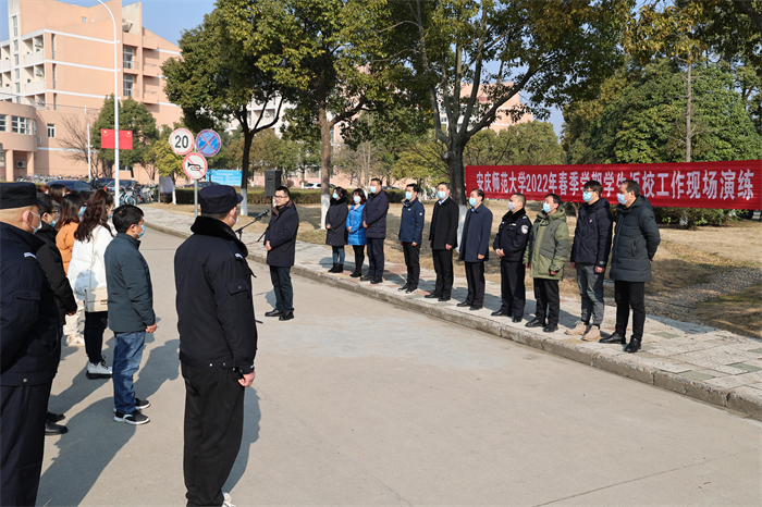2月24日,学校组织开展2022年春季学期学生返校工作演练和开学准备工作巡查。党委副书记吴照明,党委常委、副校长、校新冠肺炎疫情防控指挥部指挥长刘友忠出席演练活动并分别带队开展开学准备工作巡查。