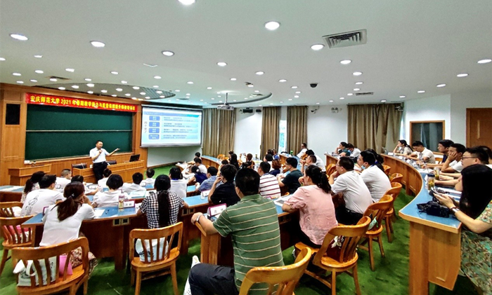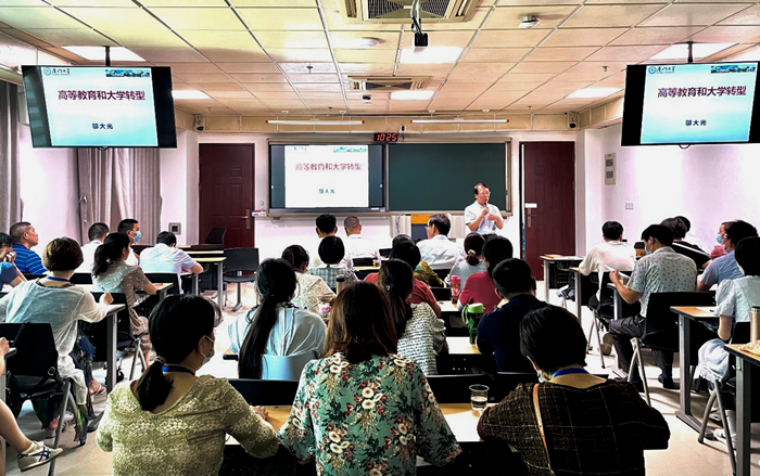 厦门大学原副校长、厦门大学教师发展中心主任邬大光教授讲授培训第一课“我国本科教育的特征:从1.0到2.0”。邬大光围绕大学转型发展与高质量保障展开精彩教学,深入阐释“时中”涵义,强调“创新思维”和“与时俱进”的教育教学思想。厦门大学教务处处长计国君教授以“新时代大学教育教学设计与管理”为主题作专题讲座,以高等教育新时代背景下,大学教育教学管理设计为重点,从发展专业化的教育教学管理队伍,建立卓越的教育管理文化,构建新时代教育管理之道等多方面展开论述,强调新时代教育教学管理创新,要有“格局”“布局”“定局”意识。厦门大学教务处副处长陈雪芬讲授课程“高校教务教学实践”,系统介绍了厦门大学本科人才培养体系,并重点介绍了“以生为本”理念下的学籍管理工作,特别强调了“依法治校”和“管理育人”的重要性。厦门大学教师发展中心副主任薛成龙博士讲授“新时代高校教学管理的主要矛盾与实践创新”,从“公平与效率”“统一与多样”“通识与专业”等10个方面,深刻揭示了当前高校本科教学管理的现实问题和主要矛盾,并介绍了厦门大学在这些方面的探索与创新。