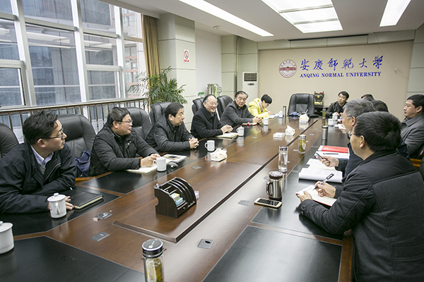 1月5日上午,在省教育厅发展规划处处长储常连等的陪同下,省“十三五”高校设置工作调研组组长、安徽中医药大学校长王健一行来beat365官网调研。校领导许继荣、闵永新、张群、汪时珍、刘友忠等会见了调研组一行。