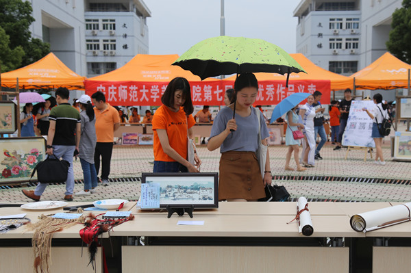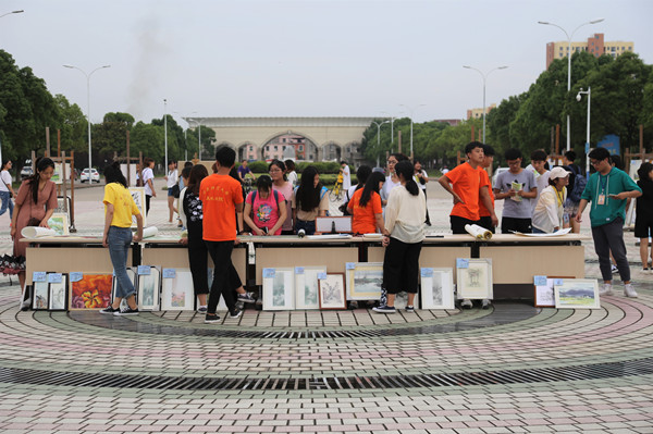 “这是我花一个月时间创作的一幅油画,采用颜料的堆积机理,表现鱼的体积和厚重感,衬布是为了和鱼呼应……”美术学2015级(2)班的邱锦涛向前来参观的师生介绍他的作品。6月8日、9日两天,美术学院于敬敷广场举办第七届学生优秀作品大型义卖活动,两天卖出作品90余幅,筹集爱心基金一万余元。活动期间,校党委书记许继荣、副校长汪时珍前往义卖现场参观并指导。