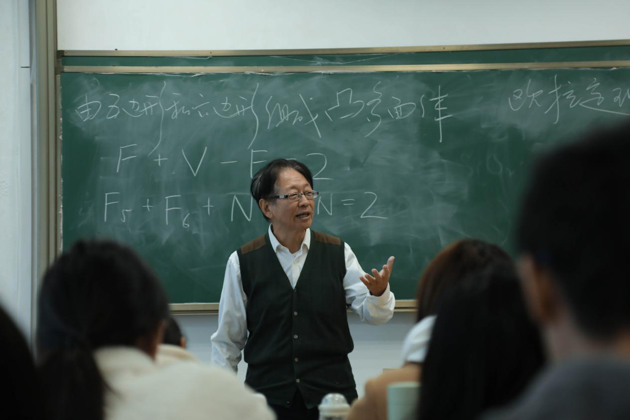 在分析了原子团簇的结构、组成和特性的过程中,郑兰荪与师生分享了个人对学术界尚未有准确定论的关于原子团簇和纳米材料的观点。介绍纳米材料的性质时,郑兰荪把课程思政融入到教学过程中,利用春秋战国百家争鸣时期的诸家思想来论证观点,他说:“庄子说‘一尺之棰,日取其半,万世不竭’,实际上转为化学语言便是我们常说的物质无限可分。”