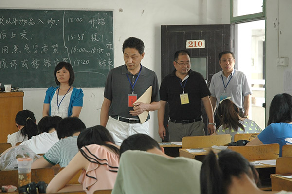 考试当天,副院长张群、省教育厅高教处童兆胜副处长在教务处及相关院系负责同志的陪同下,对考场进行了认真的巡查。(文/连飞 图/陈广)