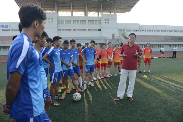 8月16日,校体艺委特邀著名足球教练、中国女足前主教练马良行先生来校指导。副校长、校体艺委主任、校足球领导小组组长张群率体育学院党政领导、校足球发展研究中心相关老师、足球训练营同学对马教练的到来表示欢迎,并在校田径场举行了简约而热烈的欢迎仪式。