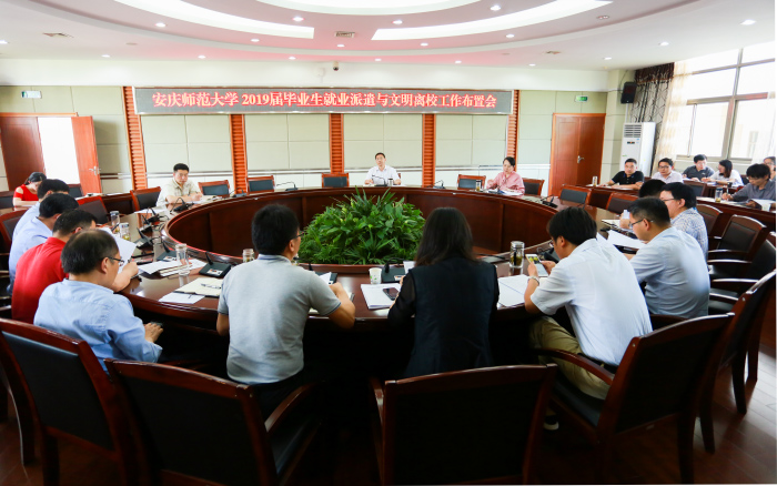 5月31日下午,beat365官网召开2019届毕业生就业派遣与文明离校工作布置会。副校长汪时珍出席会议,校办公室、组织部、宣传部、发展规划处、教务处、研究生院、学生处、财务处、安全管理处、信息化建设与管理处、基建与后勤管理处、图书馆、校医院、团委、继续教育学院等单位主要负责人及各学院党政负责人参加会议。
