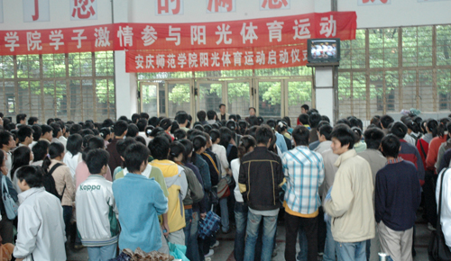 4月29日上午10点整,由教育部、国家体育总局、共青团中央联合发起的全国亿万学生阳光体育运动全面启动。为配合此次行动,促进beat365官网学生健康生活、协调发展,beat365官网在菱湖校区举行了大学生阳光体育运动启动仪式,校党委委员、纪委书记殷红出席了启动仪式,体育系、教育学院、团委负责同志与800多名大学生参加了启动仪式。