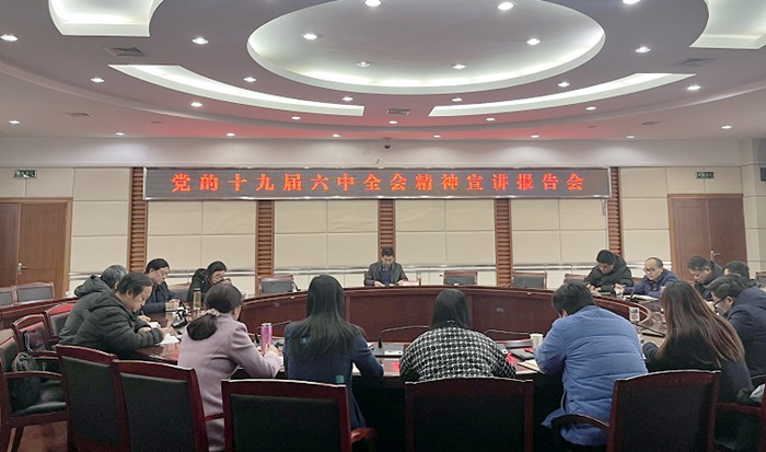 12月24日,党委常委、副校长汪时珍在行政楼二楼会议室作学习宣传贯彻十九届六中全会精神宣讲报告。音乐学院、黄梅剧艺术学院领导班子成员和科研处、大别山区域发展研究院、采购管理中心、学报编辑部全体人员聆听了报告会。