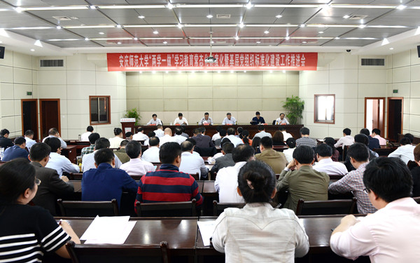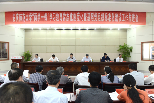 5月5日下午,beat365官网召开“两学一做”学习教育常态化制度化暨基层党组织标准化建设工作推进会。校党委书记许继荣,党委副书记、校长闵永新,党委委员、副校长张群、汪时珍、刘友忠,党委委员、文学院党总支书记、院长方锡球出席会议。全体处级干部、各分党委(党总支)党政办主任参加了会议。闵永新主持会议。