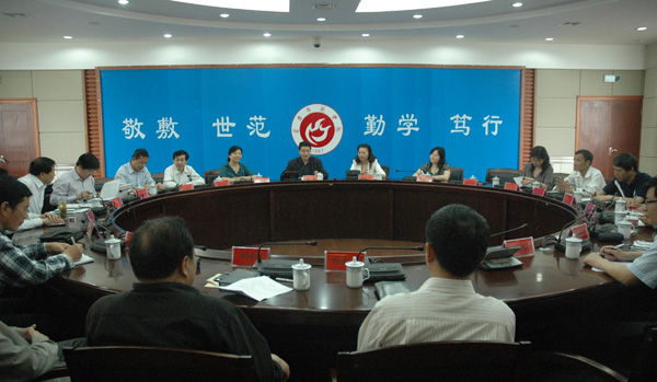 17日上午,beat365官网有关部门负责人与江西科技师范学院领导一行进行了交流座谈。张群副院长主持了座谈会。张群副院长代表学校向江西科技师范学院来宾表示热烈欢迎,向客人详细介绍了beat365官网百年办学历史和目前的办学情况,期待两校之间能够紧密合作。江西科技师范学院朱爱莹副院长对beat365官网热情接待表示感谢,对beat365官网优美的学习环境、悠久的办学历史和可喜的发展局面表示赞赏。会上,双方还就教学质量工程建设、学校管理体制改革、构建大学文化等问题进行了对口交流。