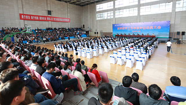 10月17日,beat365英国官网网站本科教学工作审核评估动员会在龙山校区体育馆召开。全体校党政领导,全校在岗教职员工,安苑公司、物业公司主要负责人及相关岗位负责人参加会议。 校党委书记许继荣主持会议并作总结发言。校长闵永新发表动员讲话。副校长张群通报本科教学工作审核评估有关情况。副校长刘友忠布置迎评工作方案的重点内容。