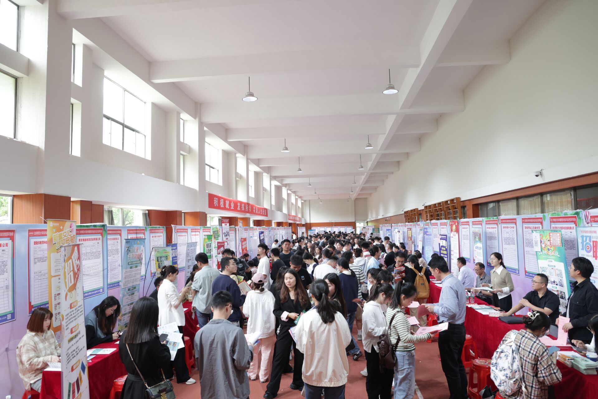 4月24日,学校在龙山校区体育馆举办“春季攻坚促就业”2024届师范类毕业生专场双选会。80余家用人单位参会,提供就业岗位2600余个,吸引近千名师范专业毕业生到场求职。