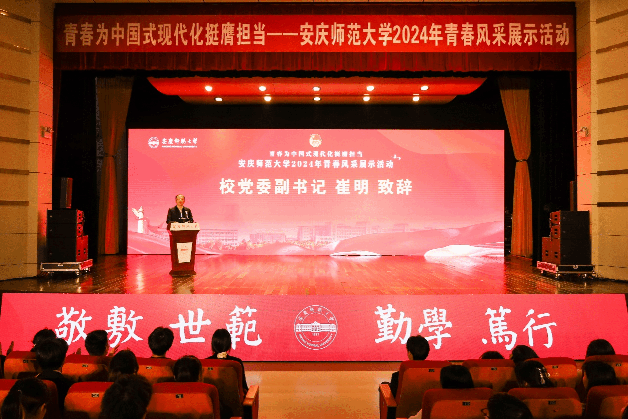 4月30日,学校在龙山校区音乐厅举行“青春为中国式现代化挺膺担当”2024年青春风采展示活动,集中展示2023年度学校团学工作中涌现出的先进集体和优秀青年的风采。校领导李福华、彭凤莲、崔明、刘友忠、肖新、徐晓宁、申传胜,校党委常委陈秀、张红飞、计裕人出席活动。学校党委部门主要负责人、各学院分管团学工作负责人及团员青年代表参加活动。