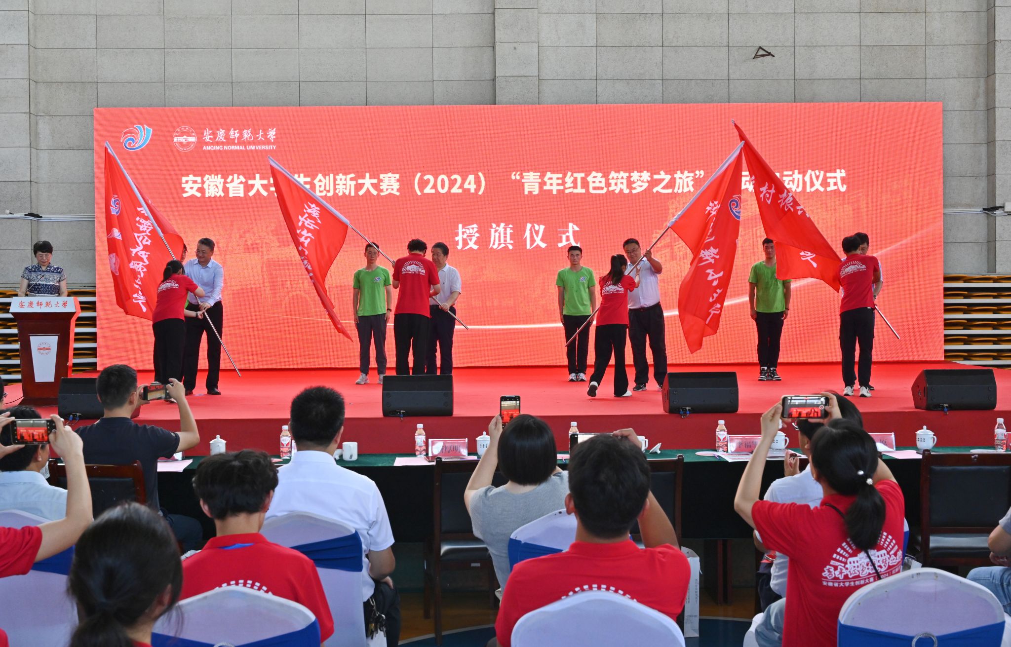 7月8日,安徽省大学生创新大赛(2024)“青年红色筑梦之旅”活动启动仪式在beat365官网龙山校区举行。安徽省委教育工委委员、省教育厅副厅长储常连,安庆市人民政府副市长唐厚明,校党委书记李福华出席启动仪式并致辞。校长彭凤莲,校党委常委、副校长吴琼,安徽省教育厅高教处处长高原、副处长苏石,安徽省大学生创新创业教育办公室主任、安徽省大学生创新大赛秘书长董承军,安徽省大学生创新大赛副秘书长李兴国,校党委常委陈秀、张红飞出席启动仪式。各二级学院、有关职能部门负责人,全省高校300余名师生代表等参加启动仪式。启动仪式由彭凤莲主持。