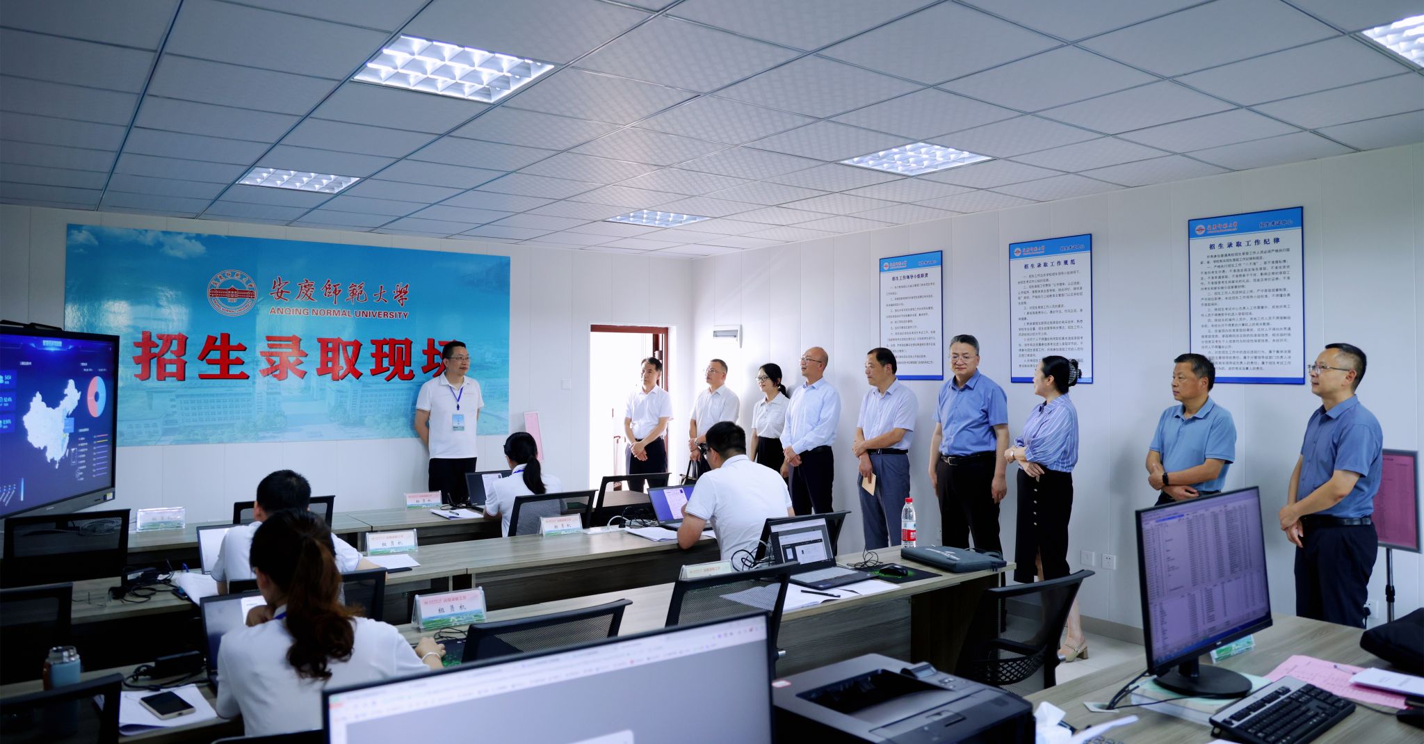会后,校领导与招生录取现场的工作人员进行了亲切交流,对暑期仍坚守在招生录取一线的全体工作人员进行了慰问。