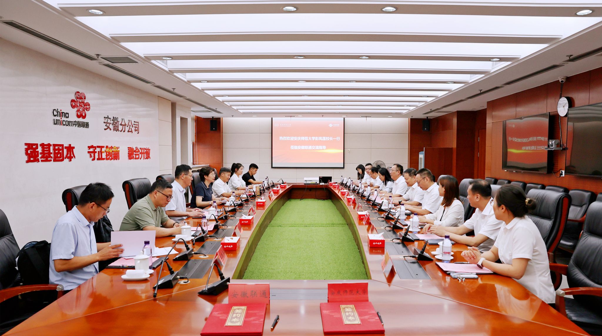 彭凤莲对中国联通安徽分公司长期以来对学校的大力支持表示感谢,并介绍了学校的发展历史、办学传统以及近年来学校在校园信息化方面建设情况,并对中国联通安徽分公司稳步发展、积极进取的良好态势表示赞赏。她指出,学校坚定“地方性、应用型、有特色、高水平”办学定位,紧密围绕“举师范旗、走应用路、创特色牌”发展思路,主动对接地方经济社会发展,推动校企合作不断深化。她表示,信息技术的迅猛发展正在深刻地影响着教育领域和通信领域,期待双方进一步深化校企合作,在人才培养、智慧教育、智慧校园、后勤服务等方面开展广泛合作交流,产出更多高质量成果,实现合作共赢、共同发展。