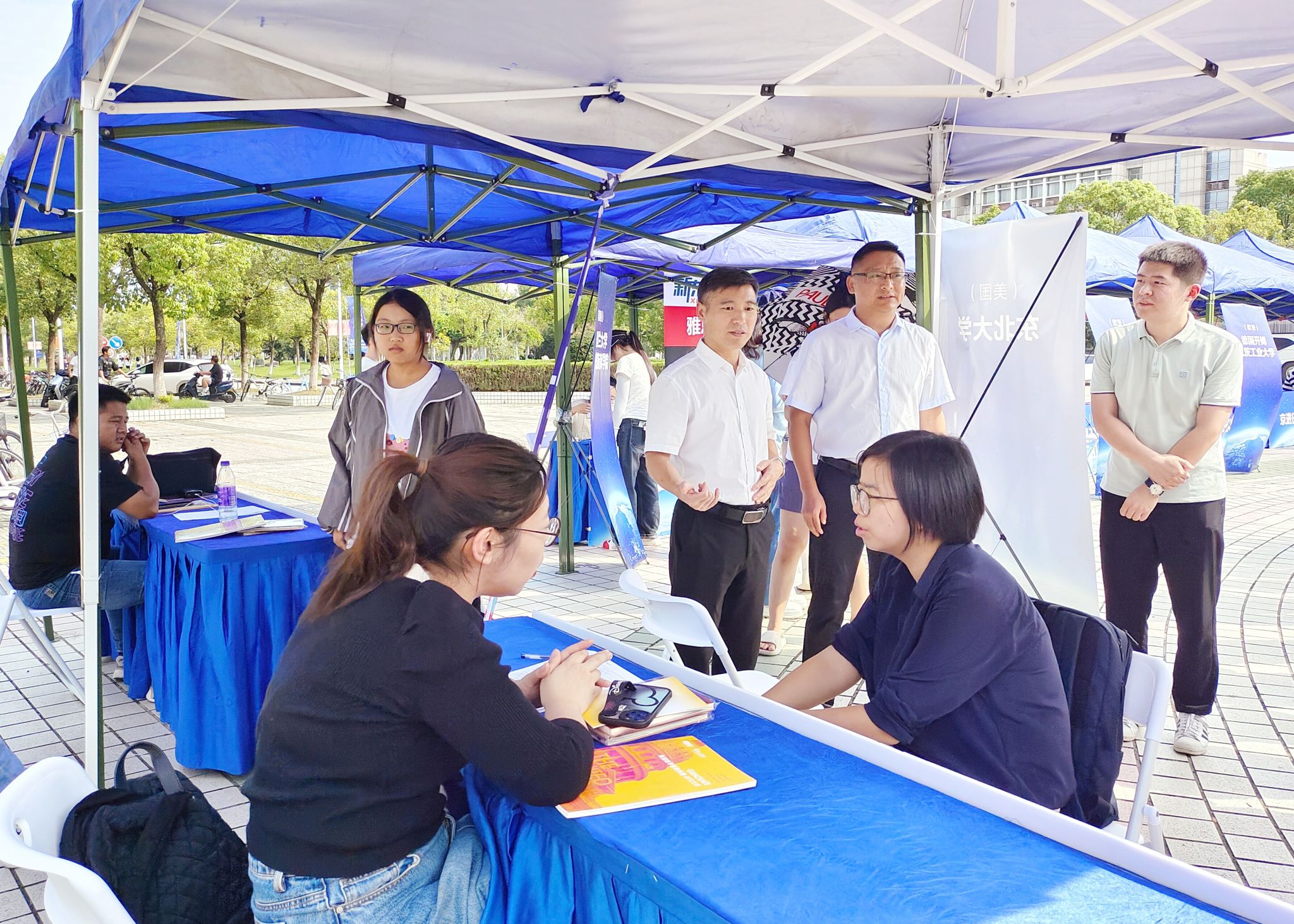 9月25日,beat365英国官网网站国际教育展在龙山校区公共教学楼前敬敷广场举行。校党委常委、副校长申传胜来到展会现场,实地了解国际教育展情况,对海外院校代表来校参展表示欢迎,并与他们就进一步提升出国英语水平、促进学生境外学习交流、提升学校国际化水平等进行深入探讨交流。