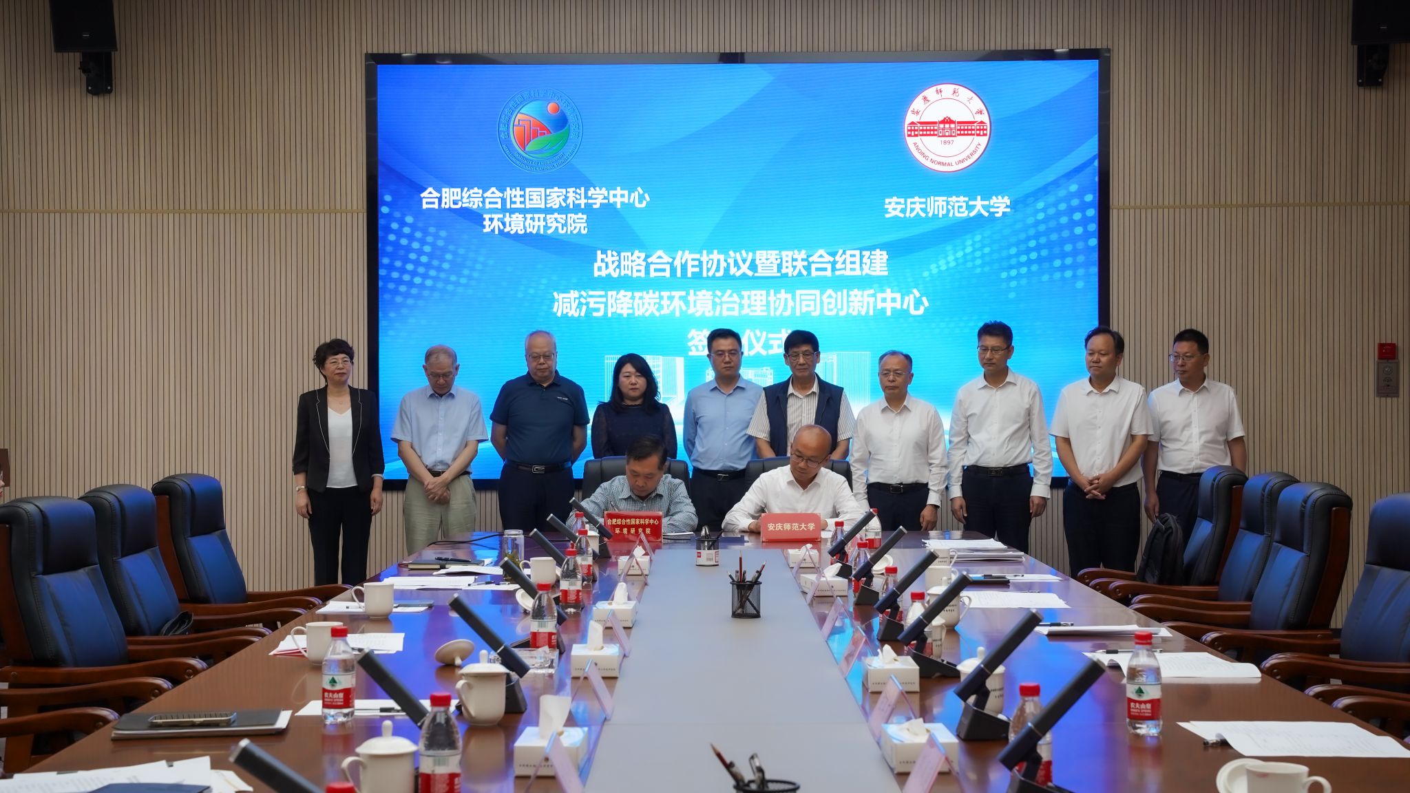9月26日,学校与合肥综合性国家科学中心环境研究院共建减污降碳环境治理协同创新中心签约暨揭牌仪式在合肥举行。校长彭凤莲,校党委常委、副校长肖新出席揭牌仪式。中国工程院院士、合肥综合性国家科学中心环境研究院院长刘文清,中国工程院院士、合肥综合性国家科学中心环境研究院副院长俞汉青,合肥综合性国家科学中心环境研究院副院长邢献军,安徽大学、安徽理工大学、安徽建筑大学、合肥大学、阜阳师范大学校领导出席活动。省发展和改革委员会、省教育厅相关部门负责人,beat365官网服务经济社会发展处、资源环境学院负责人参加活动。