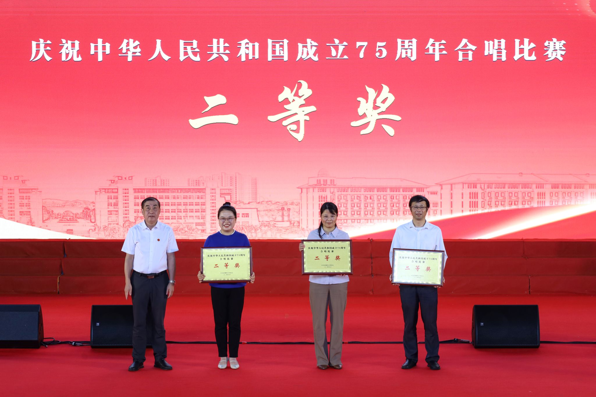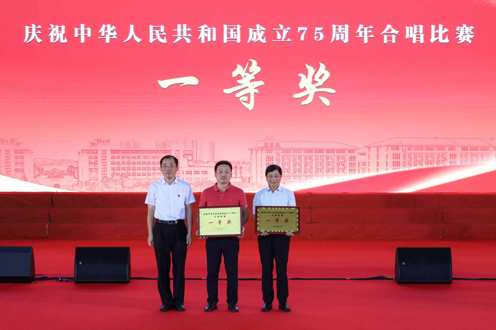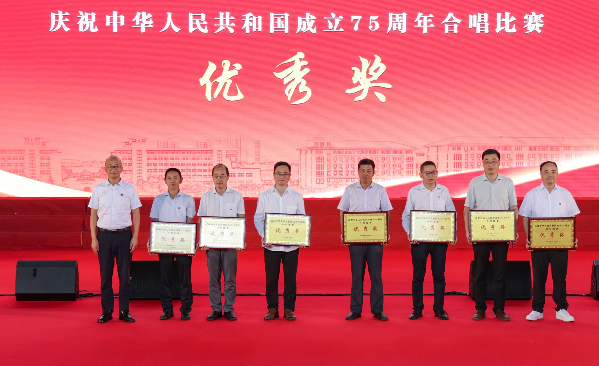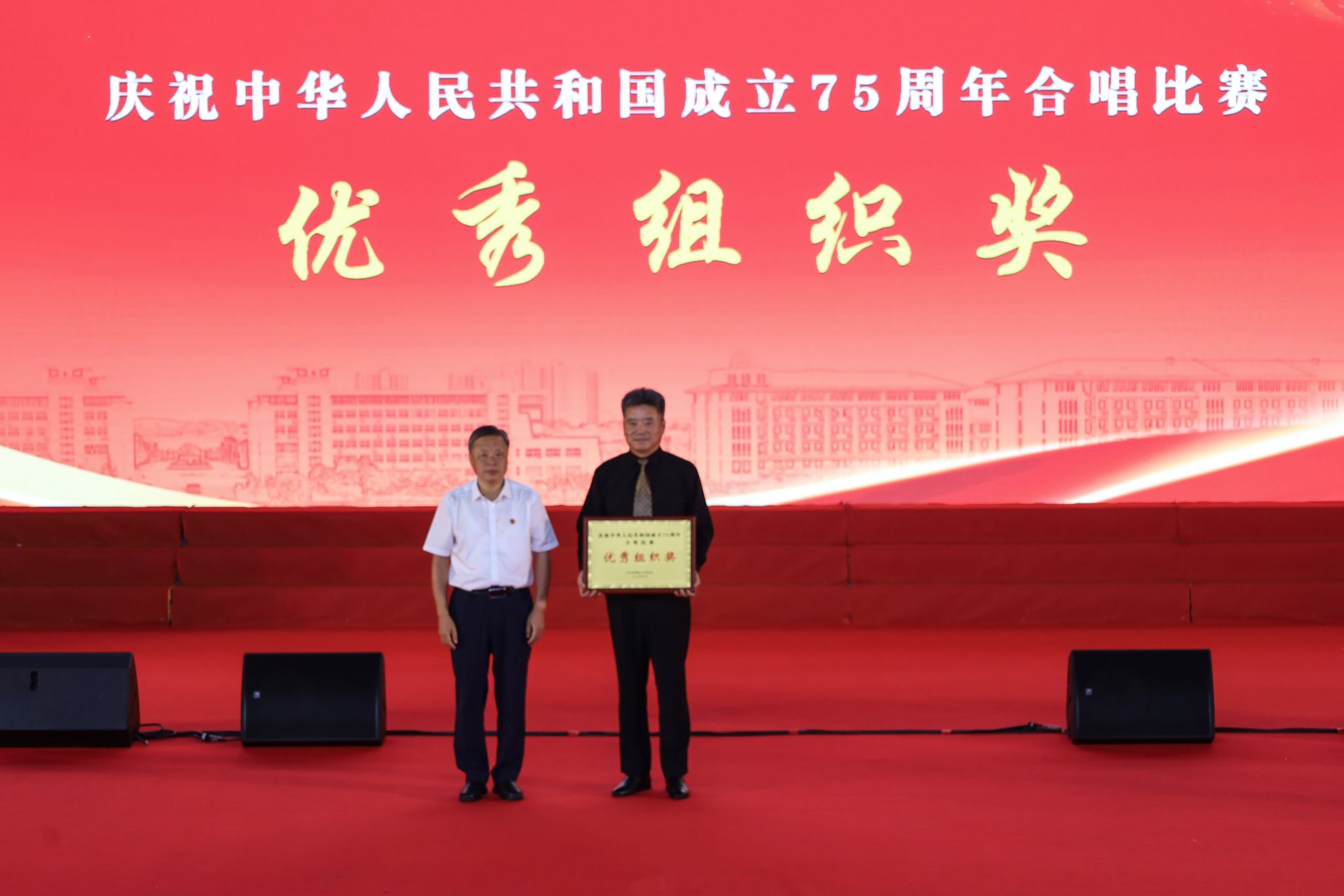 9月28日,学校举办庆祝中华人民共和国成立75周年合唱比赛,21支代表队、1100余名师生齐聚龙山校区体育馆,共上一堂有声有色的艺术思政大课。校党政领导彭凤莲、崔明、刘友忠、吴琼、肖新、秦朗、申传胜、陈秀、张红飞、计裕人参加合唱,校领导为获奖队伍颁奖。