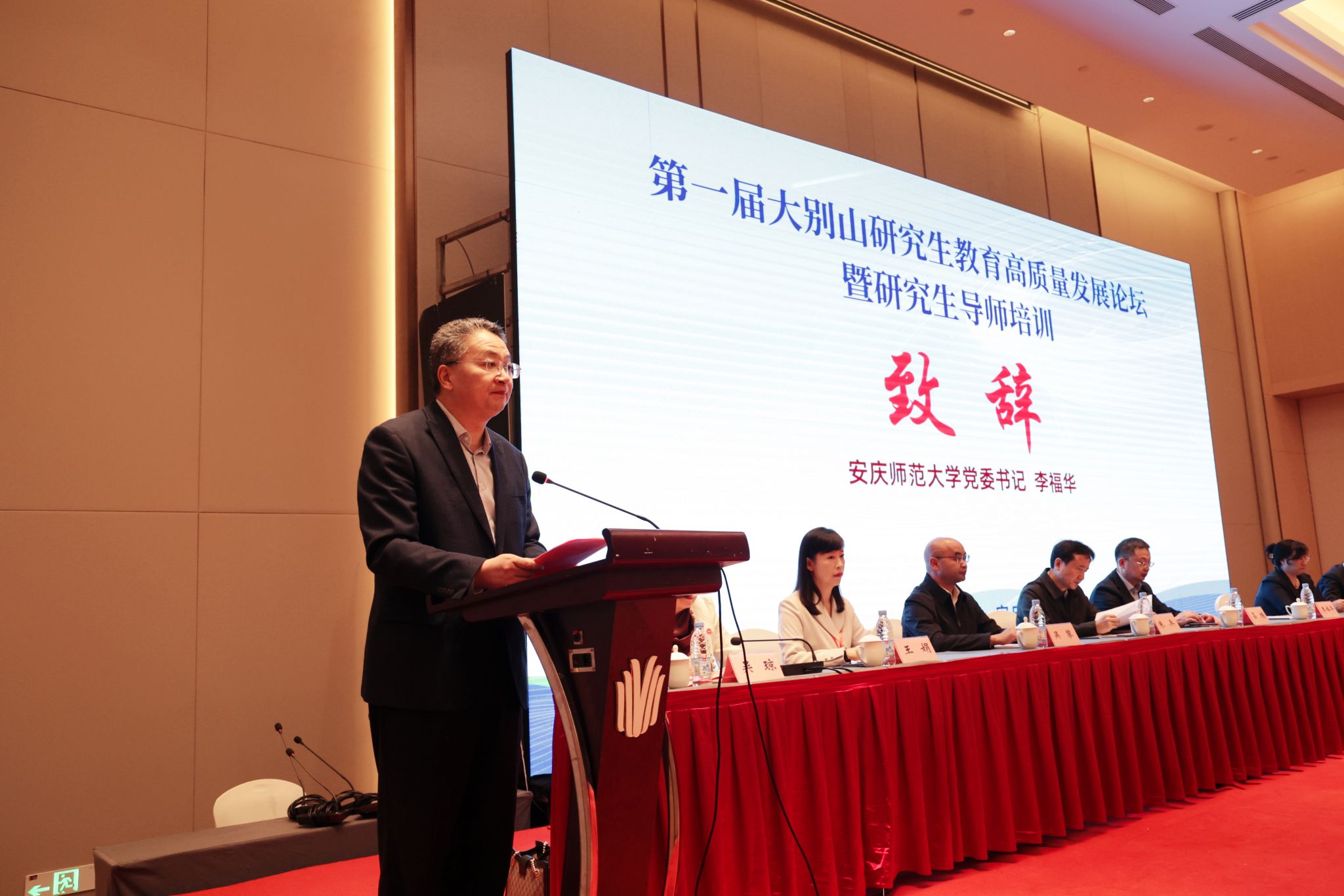 10月30日,第一届大别山研究生教育高质量发展论坛暨研究生导师培训在安庆举行。校党委书记李福华,安庆市委常委、副市长吕栋出席开幕式并致辞。南京信息工程大学副校长吴攀、北京航空航天大学研究生教育研究中心主任马永红、中国石油化工股份有限公司安庆分公司总经理朱兵、皖西学院副院长张刚、黄冈师范学院副校长马志斌、信阳师范大学副校长王娟出席开幕式。校党委常委、副校长刘友忠出席闭幕式并致辞,校党委常委、副校长吴琼主持开幕式。