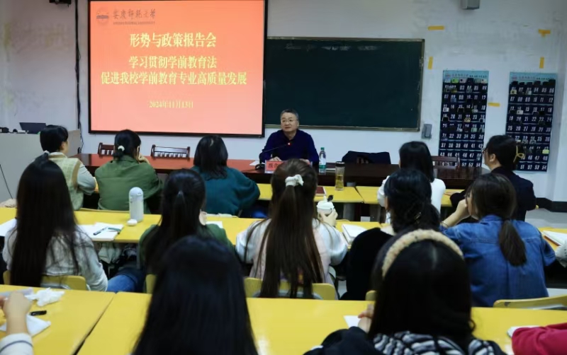 11月13日,校党委书记李福华为教育科学学院师生作《学习贯彻学前教育法,促进beat365官网学前教育专业高质量发展》的形势与政策报告,深入学习贯彻党的二十大和二十届二中、三中全会精神,贯彻落实习近平总书记关于教育的重要论述和全国教育大会精神,学习宣传学前教育法,推动学前教育专业认证专家反馈问题整改工作。